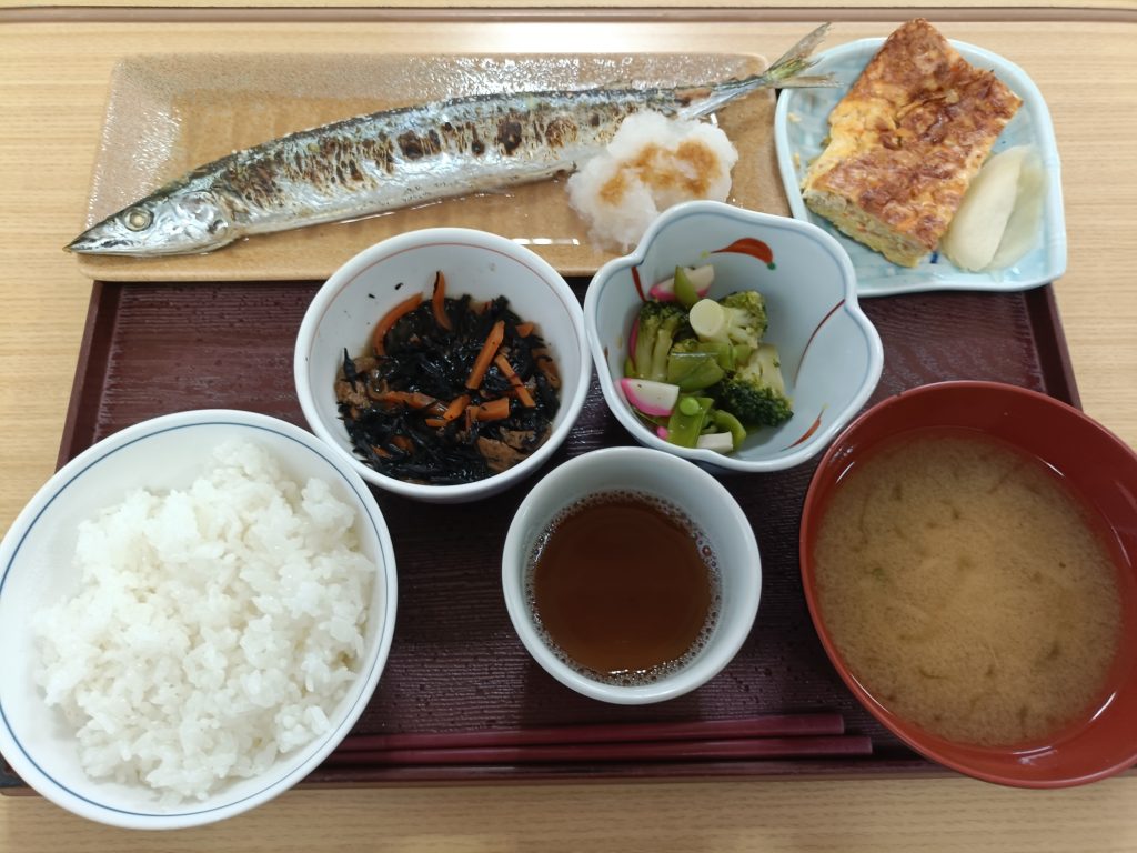②「さんまの丸ごと塩焼き」 今年のさんまは皿からはみ出るくらいの大きさで、皆さんたいへん喜んで召し上がられました。